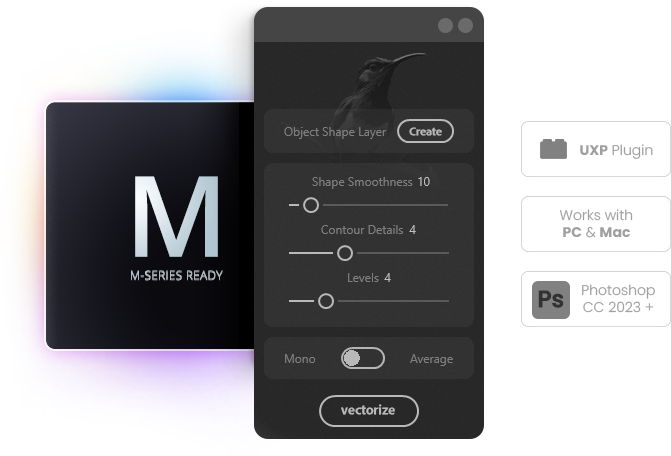 Image2Vector transforms photos, objects, illustrations, or AI images into real, fully editable vector artwork directly inside Photoshop.