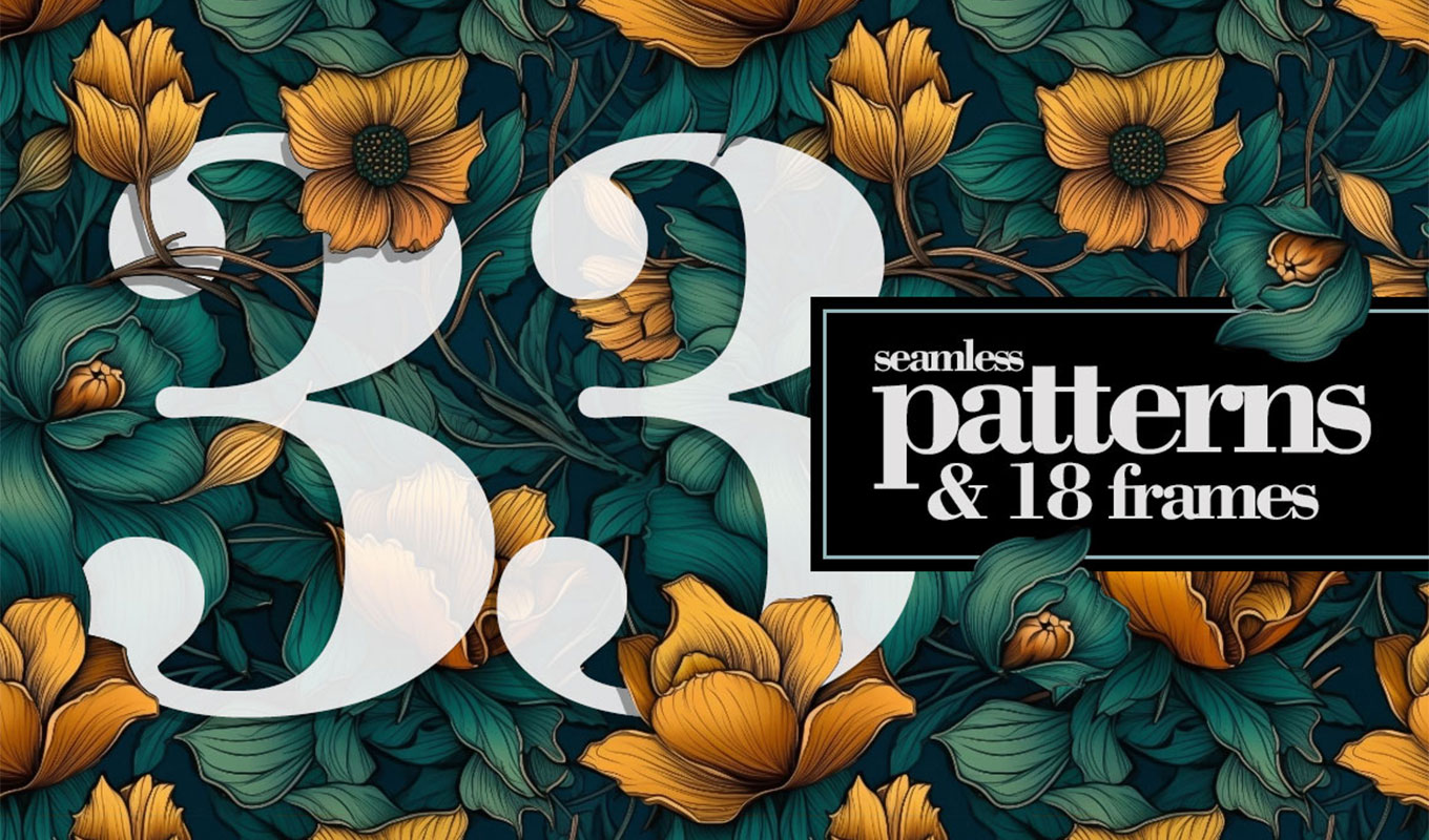 In addition to the patterns, you’ll also receive 18 beautifully detailed flower frames that can be combined with the seamless designs to create striking, layered compositions. Whether you need a subtle background or a statement graphic, this pack gives you the flexibility to achieve professional results quickly.